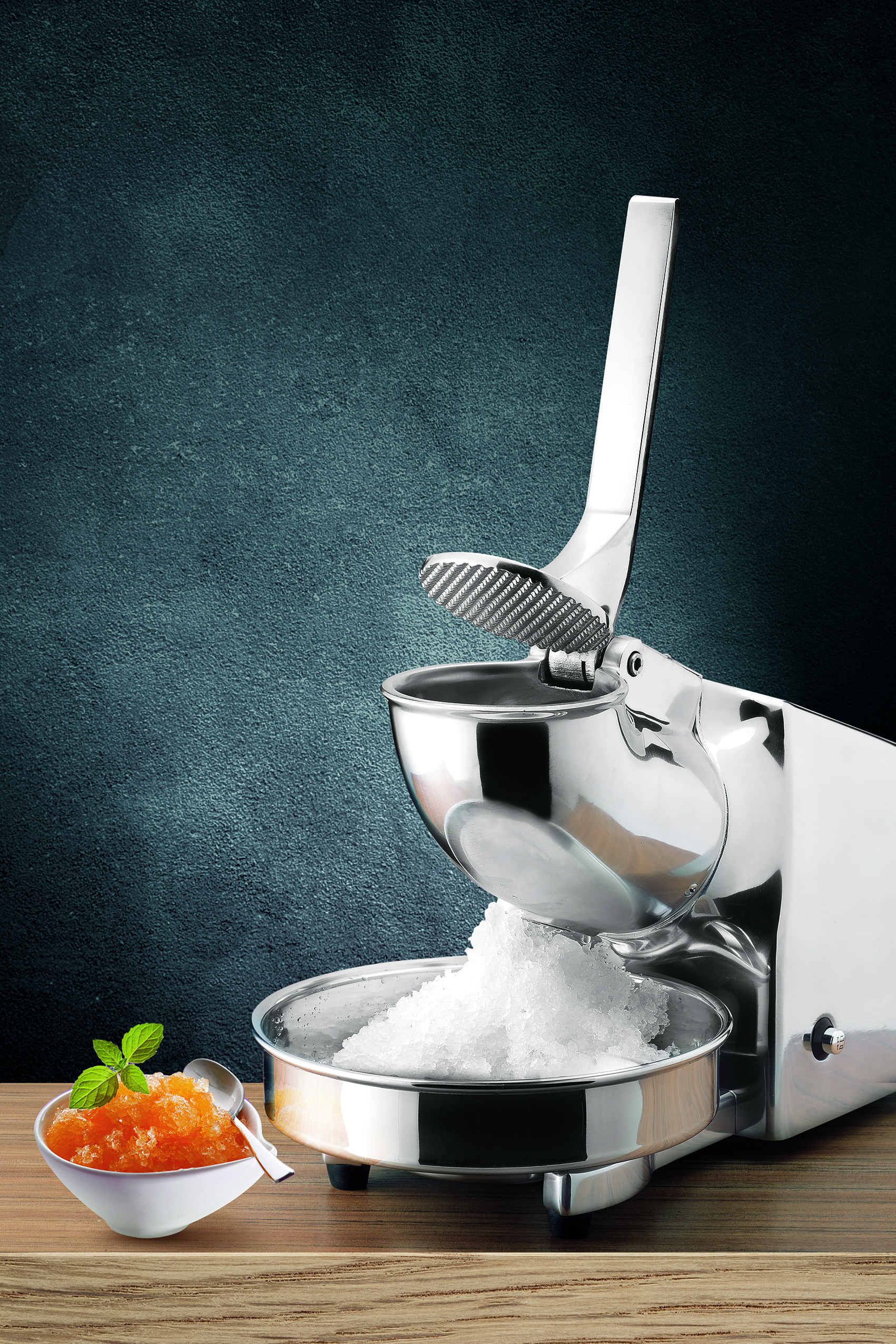 Il tritaghiaccio classico per ottenere il ghiaccio fine, per la preparazione di granite a base di sciroppo o drink rinfrescanti.